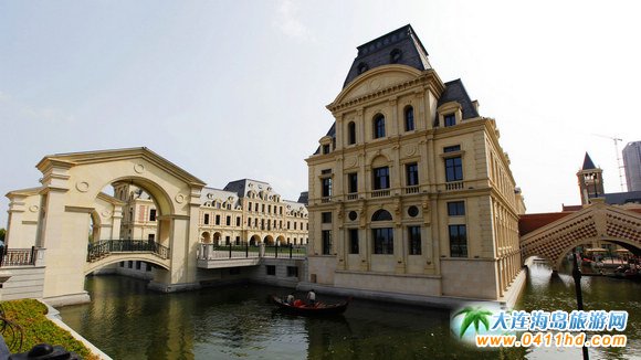 在大連威尼斯水城中有著歐洲風格的街道、類似馬戲團的歌舞,