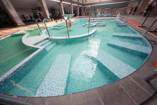 海洋療法”為特色的五星主題酒店,占地8.3萬平米,共有室外泡池30個,室內(nèi)泡池37個。