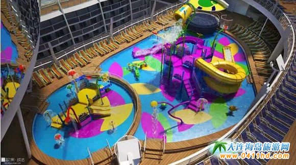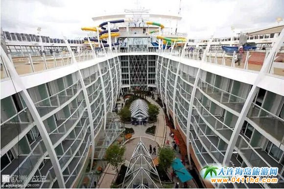 它有四個足球場那么大,最大容客量達(dá)六千四百多人。是當(dāng)今世界上最大的郵輪。