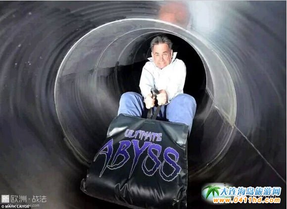 而它最為獨(dú)特的游樂設(shè)施,就是船頭這段名叫:“極度深淵”的滑道。這段滑道有三十米,玩家要在腳上套一個黑色的袋子,手拽著繩子滑下去。感覺也是很隨意呢……